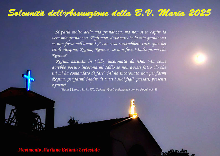 Le pagine web di questo sito sono quelle ufficiali, altri siti non sono autorizzati dall'autorità ecclesiastica e, quindi, non rappresentano il carisma del Movimento Mariano Betania Ecclesiale che ha avuto il suo inizio con Maria Giovanna Gelfusa.